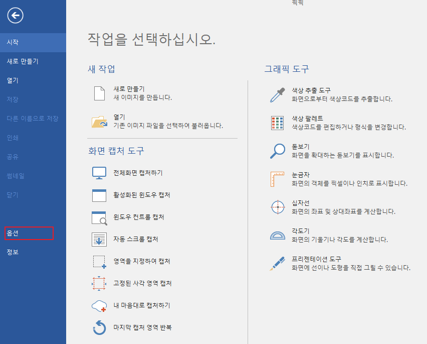 픽픽 프로그램 실행 후 파일 - 옵션으로 진입합니다.