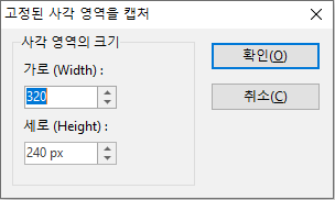 - 고정된 사각 영역을 캡처하기 : 픽셀로 가로 세로 영역을 지정해 해당 크기에 맞게 캡처하는 기능입니다.