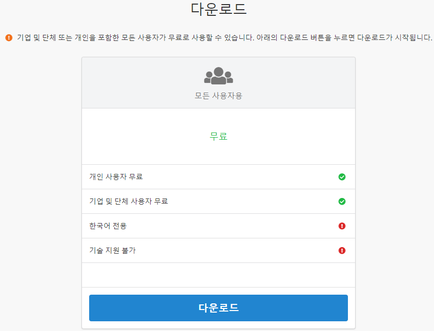 이렇게 다운로드 페이지를 클릭하면 무료라는 점을 한 번 더 강조하면서 알려주네요 ㅎㅎ