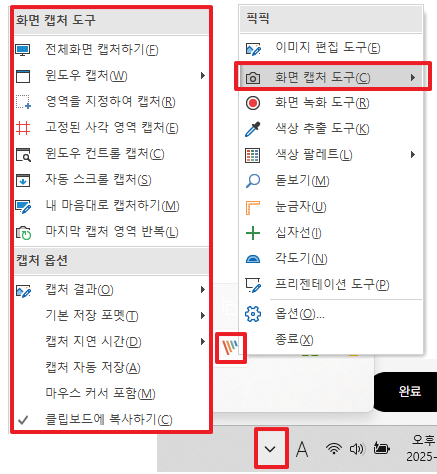 - 아이콘 트레이에서 캡처 방식을 지정하여 사용하기