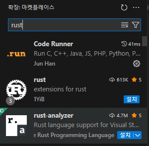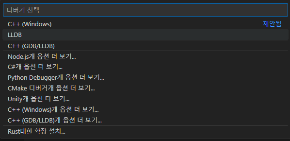 rust-analyzer, codeLLDB 확장을 설치합니다.