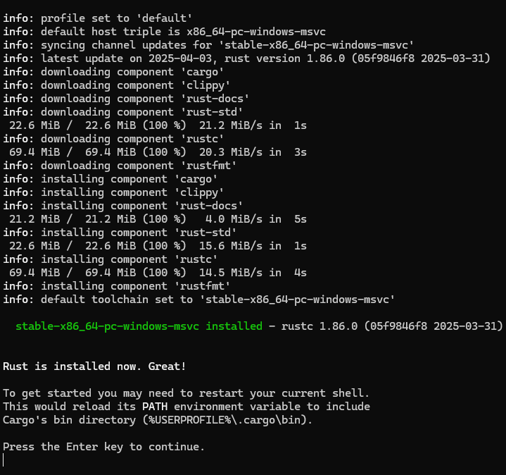 1. Rust 공식 웹에서 설치프로그램 다운로드 - 가장 간편(Windows 경우)