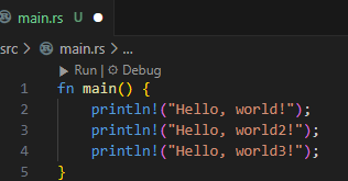 Debug도 잘 되는지 확인을 위해 main.rs를 아래와 같이 수정합니다.